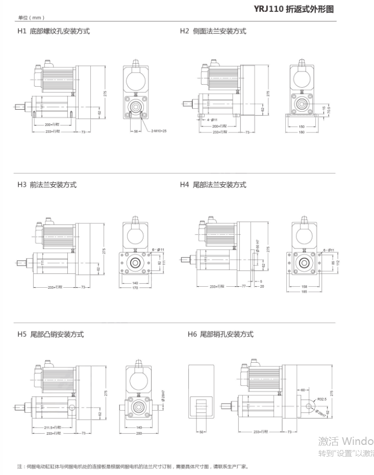 YRJ110型折返式伺服电动缸