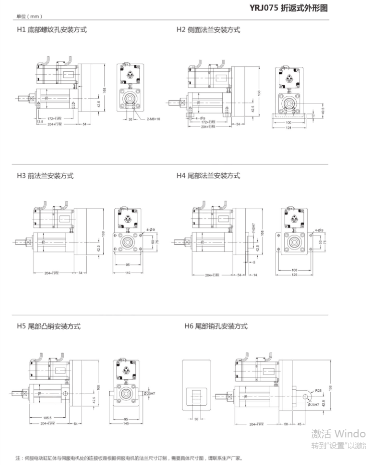 YRJ075型折返式伺服电动缸